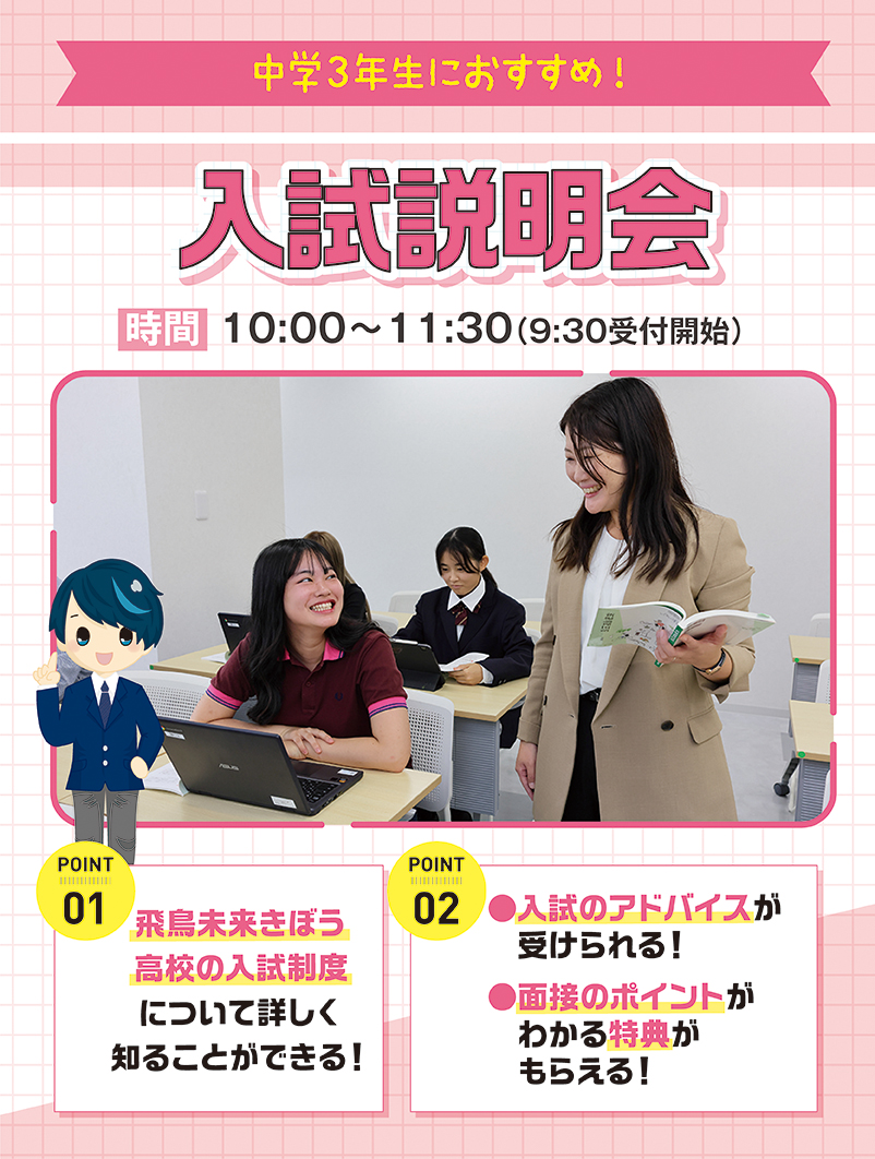 飛鳥未来きぼう高校の受験を検討している方にオススメのイベントです!