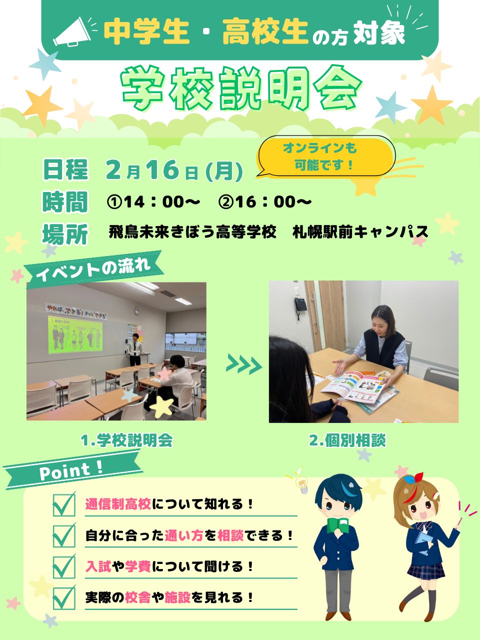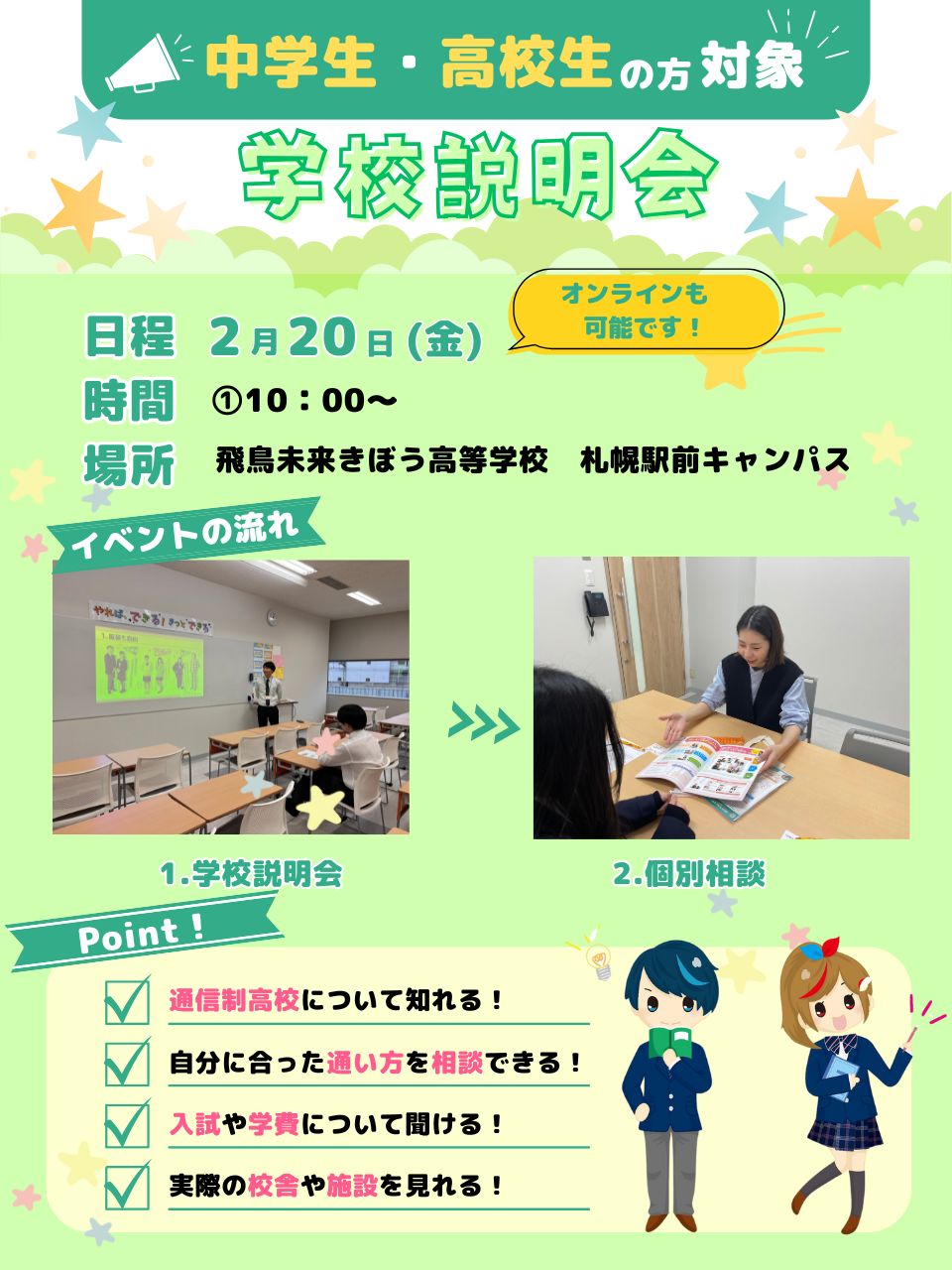 飛鳥未来きぼう高等学校(札幌駅前キャンパス)は自分らしく、夢に向かって羽ばたく力を身につける事が出来る単位制・通信制の高校です。