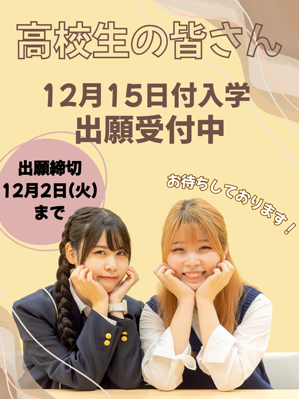 【中学3年生の皆さんへ】第二次入試出願締切のご案内