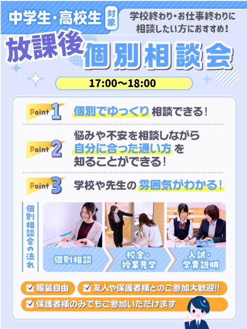 ★個別に相談したい人向け★【中学生・高校生対象】12月16日(火)放課後個別相談会