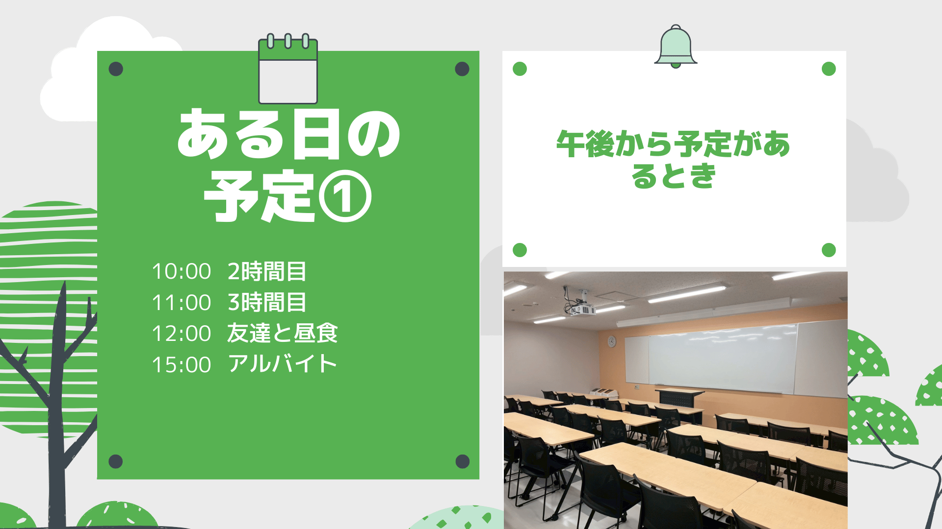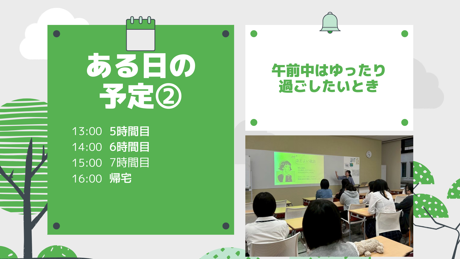 午前中だけ授業を受けて午後に帰宅もOK!午後から授業を受けるのもOK!