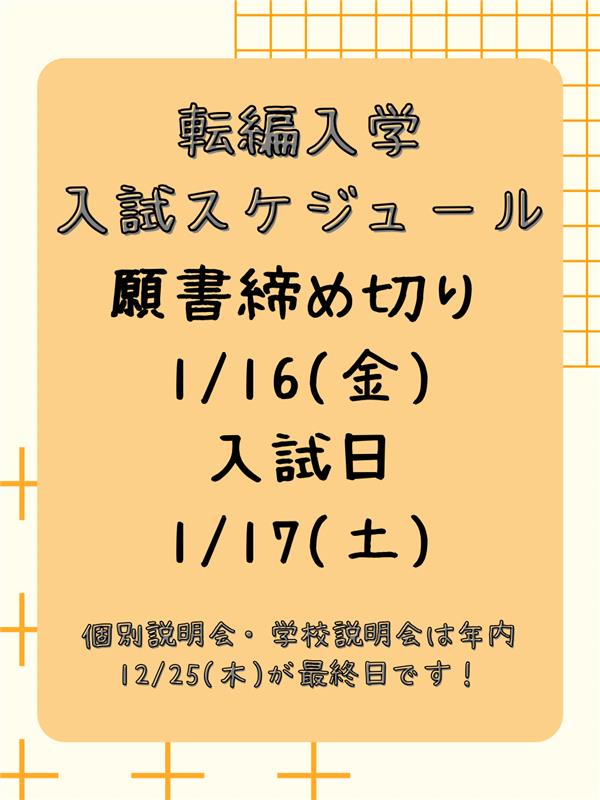 ただいま本校では、転入学・編入学の受付を行っています✨