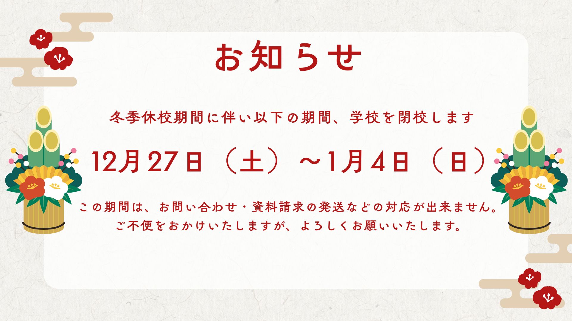 2025年12月27日(土)~2026年1月4日(日)は年末年始のお休みとさせていただきます🙇♂️
