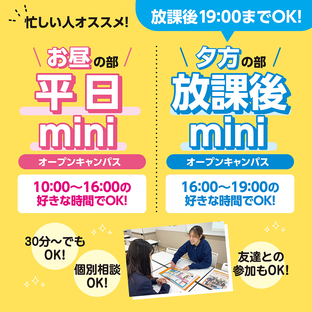 個別にじっくりお話を聞くことができます!中学生も高校生も参加可能なイベントです。