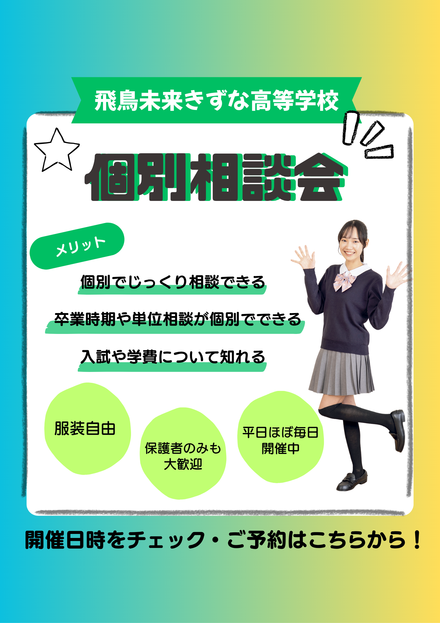 ☑個別でゆっくりお話を聞きたい!☑自分に合った通い方を相談したい。☑自分でも通えるか相談してみたい。