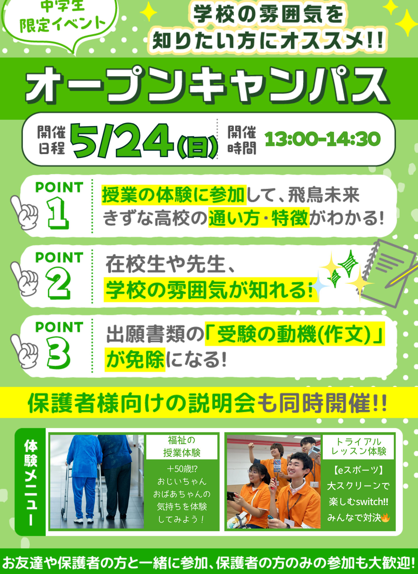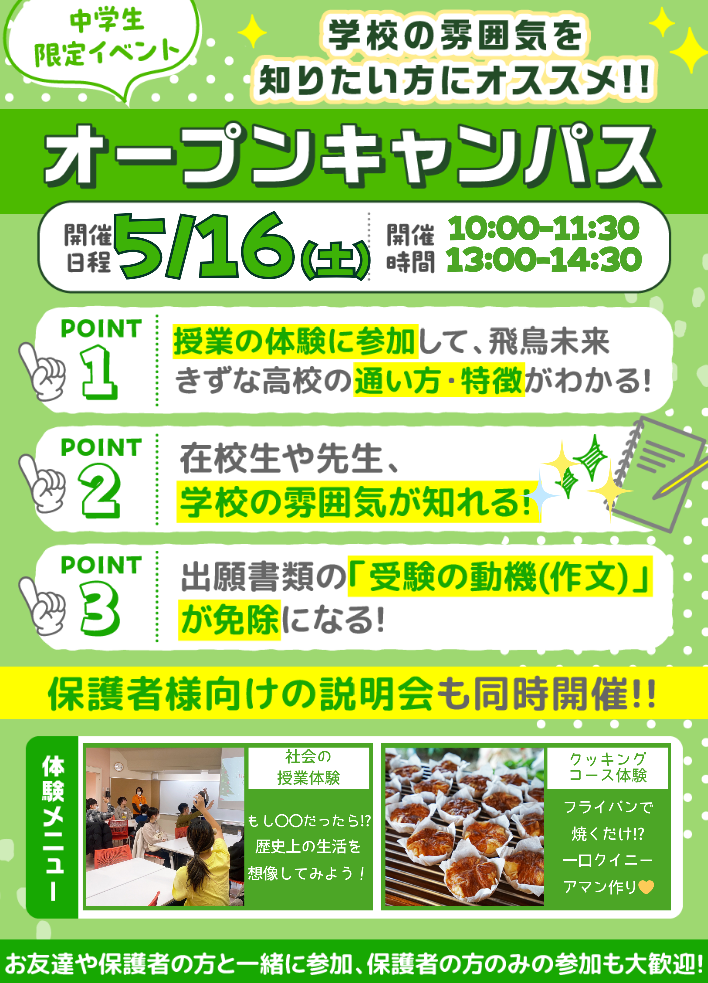 ①学校の通い方や雰囲気がよくわかる「オープンキャンパス」