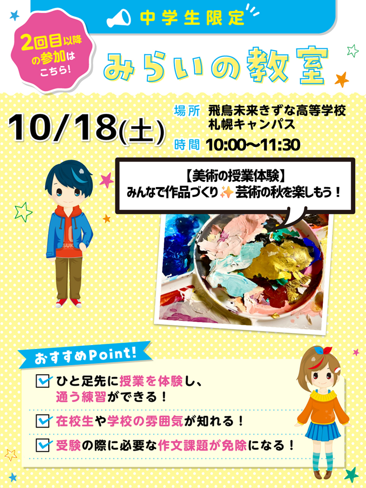 - 学校説明:現在の状況やお悩みに合わせて学校の通い方についてお話しします📣学費や入試についてもご説明いたします。