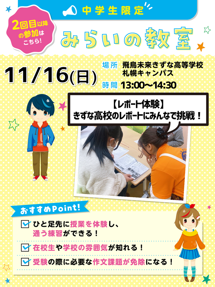 - 学校説明:現在の状況やお悩みに合わせて学校の通い方についてお話しします📣学費や入試についてもご説明いたします。