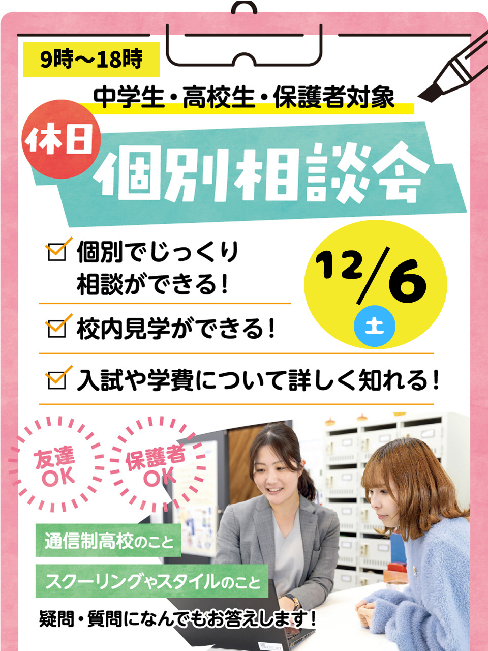 【中学生・高校生・保護者の方大歓迎!】12月6日(土)休日個別相談会開催