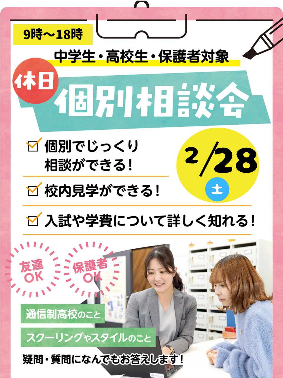 【中学生・高校生・保護者対象】休日個別相談会