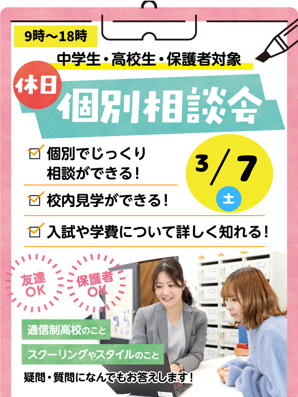 【中学生・高校生・保護者】休日個別相談会🌞