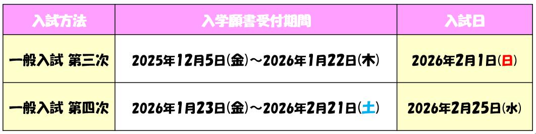 ※四次入試以降は、募集状況に応じて随時実施予定です。定員に達した時点で終了となります。
