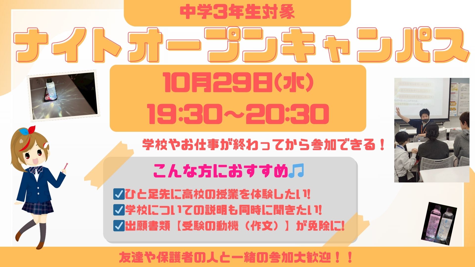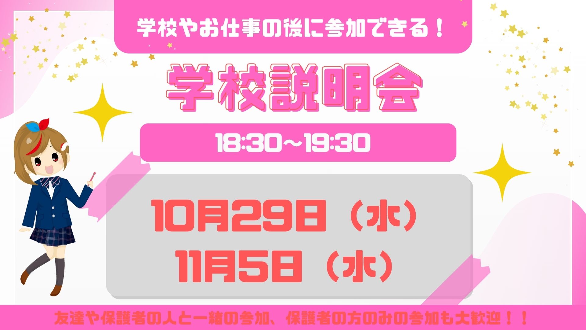 学校やお仕事が終わってから、オープンキャンパスに参加できます!!