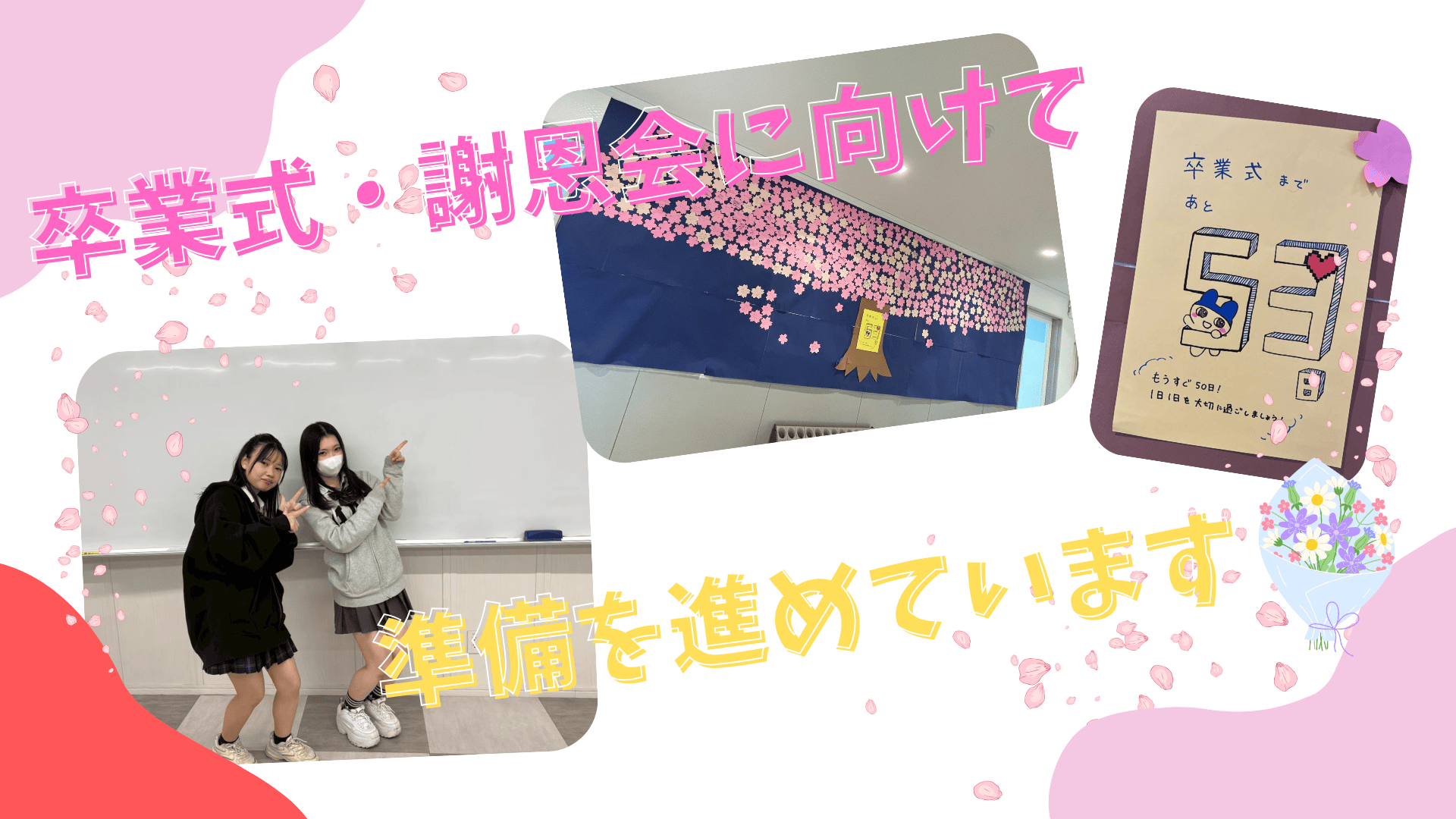 実行委員中心に本格的に準備が始まり校内には卒業式・謝恩会の装飾がされています💐💐💐