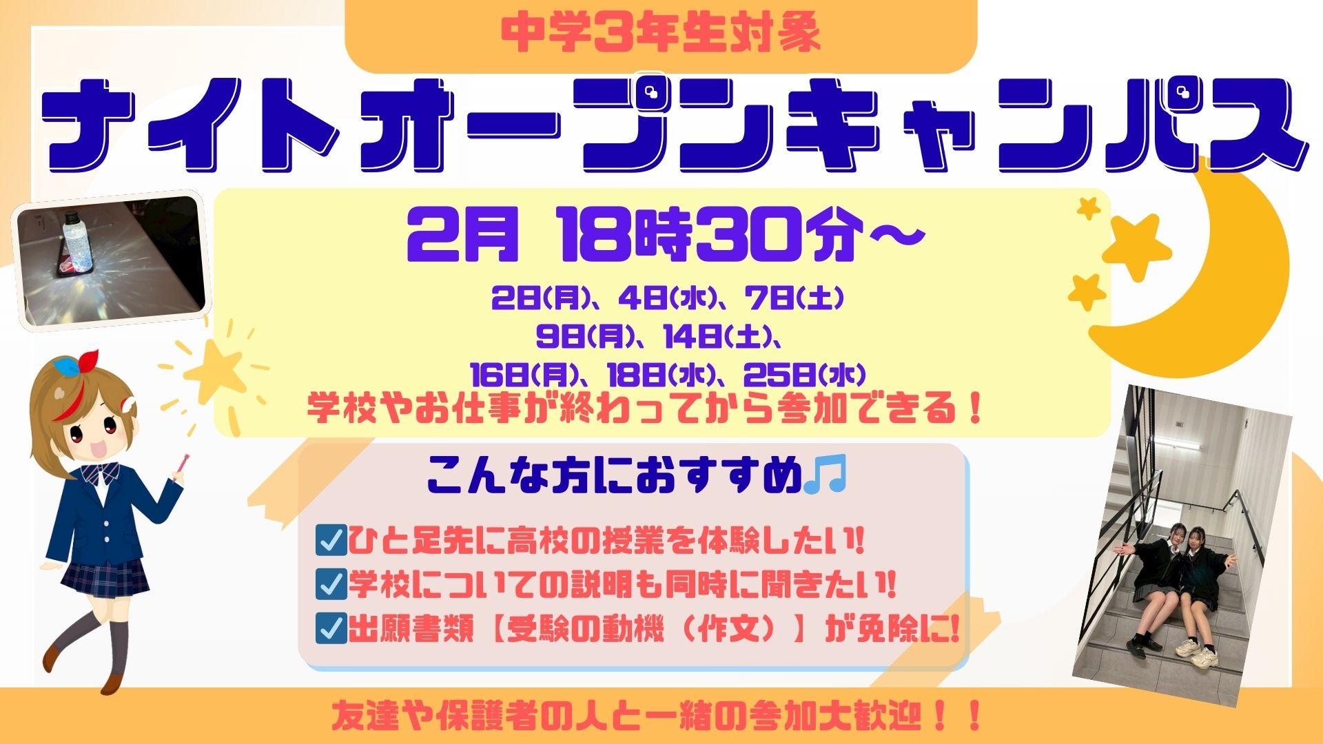 【中学生・高校生・保護者の方へ】2月のイベントのご案内☆ナイトオープンキャンパス開催!