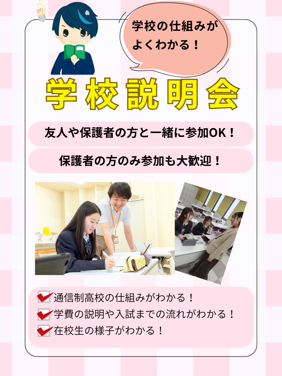 ♦学校の通い方/学費/入試のことがわかる!