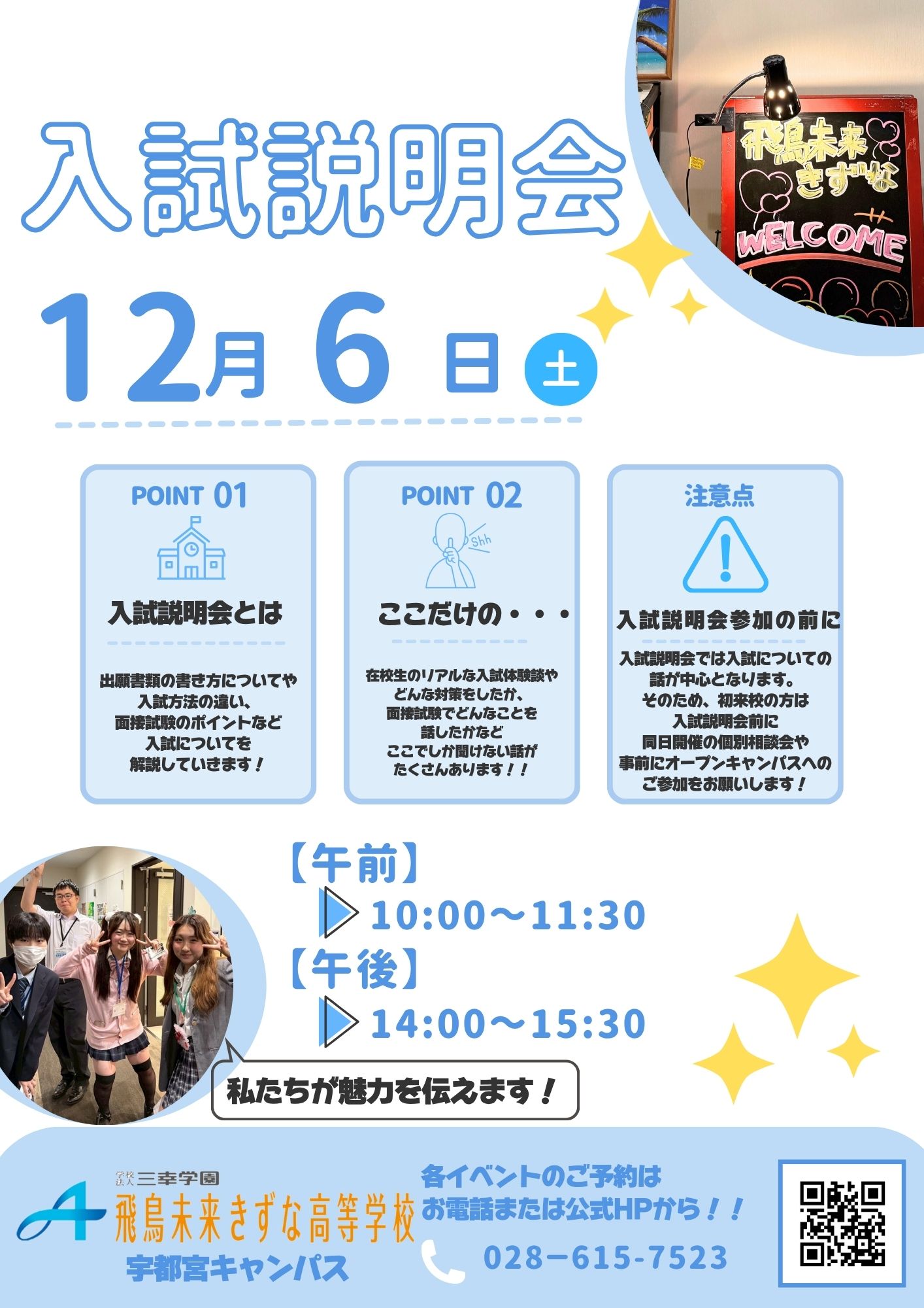 中学生の方はもちろん、転入・編入をお考えの方もぜひご参加ください!