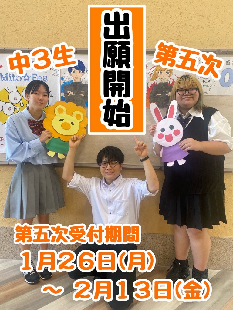 【中学3年生の皆さんへ】第五次 出願開始です♪