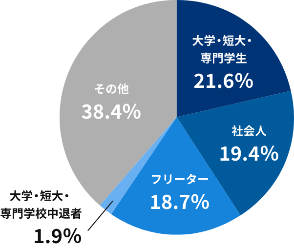 12人に1人は再進学者!年齢に限らず様々な人が学んでいるのでご安心ください!