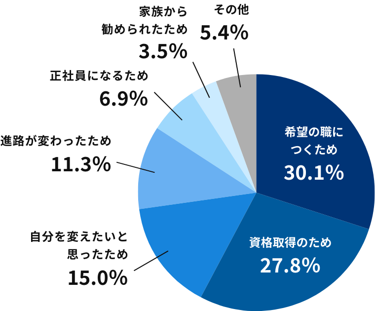 夢をかなえるため、資格取得のため、安定した職につくため、家族に勧められたためなど様々です!