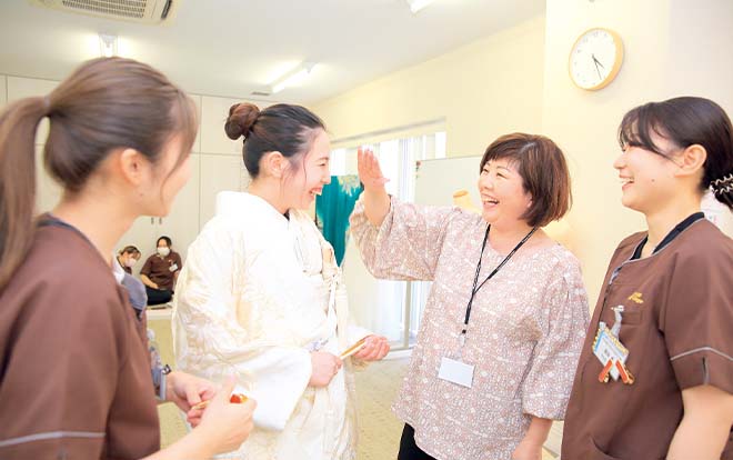ブライダルに必要な着物に関する知識と技術を学び、在学中に資格取得できる力を育みます。