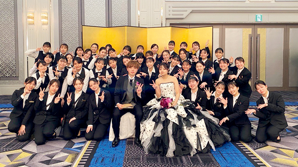 - 新郎新婦様のご希望をヒアリングから始まり、プランニング、挙式などを生徒みんなでつくりあげる