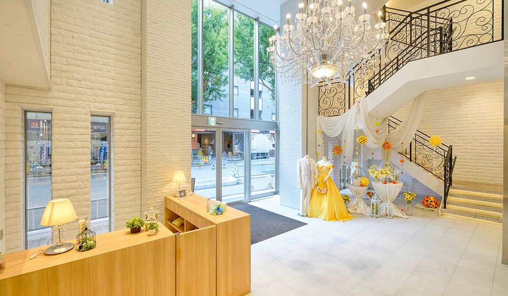 結婚式場さながらの施設で、実践的な授業が日常的に受けられます。本格的なスタジオは、ブライダルフォトの学習や作品撮りで使用します。