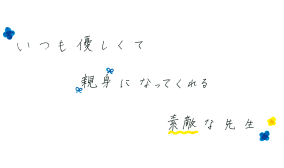 授業の内容や就職など、いつでも気軽に相談できます。前に相談したことを気に掛けてくれたり、名前を憶えてくれていたり…。先生の期待に応えられるようにがんばろう!って思えます。