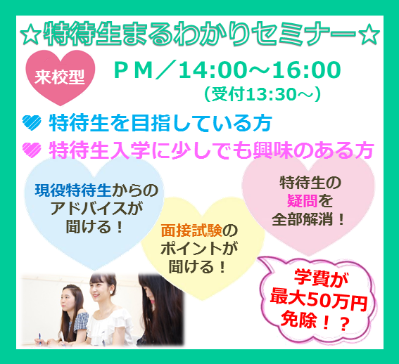 【来校型】特待生まるわかりセミナー★高校3年生・既卒・社会人の方必見★