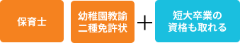 短期大学に同時入学して併修する制度をとっているので、卒業時には短期大学士という短大卒業の資格も得ることができます。
