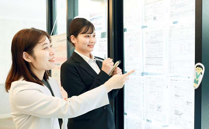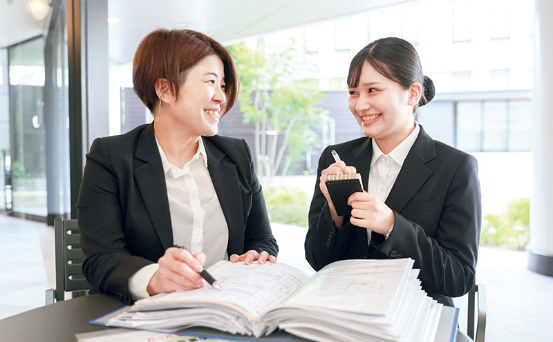 学生一人ひとりの個性や実力をしっかりと把握しているクラス担任と、就職したいエリアの情報に詳しいエリア担当教員の2人で、就職活動をガッチリとサポート。よりリアルで的確なアドバイスを行います。