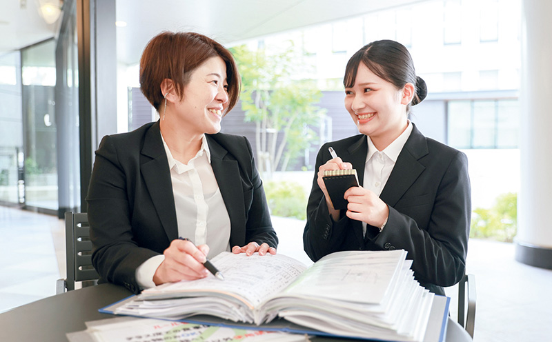 学生一人ひとりの個性や実力をしっかりと把握しているクラス担任と、就職したいエリアの情報に詳しいエリア別就職担当教員の2人で、就職活動をガッチリとサポート。よりリアルで的確なアドバイスを行います。