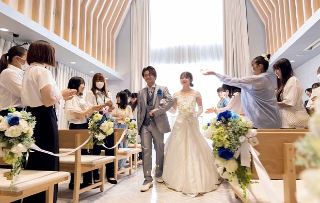 「ブライダルプロジェクト」はクラス全員で模擬挙式を作り上げる授業。1から考える大変さと達成感が味わえます。「ブライダルセールス」では接客アプローチを学び、提案力・企画力を磨きます。