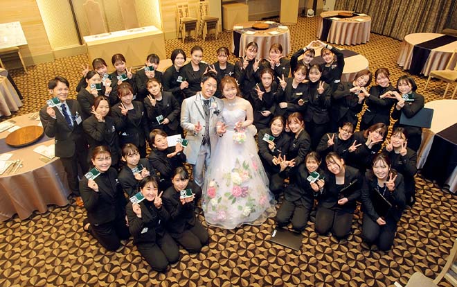 本物の結婚式を生徒がプロデュース。新郎新婦のご要望に沿って、オリジナルの式を創ります。