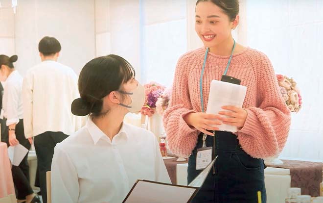 現場で必要なマナーやブライダル知識など、ホテルで働くための基礎を、楽しく、わかりやすく、実践的に学べます。
