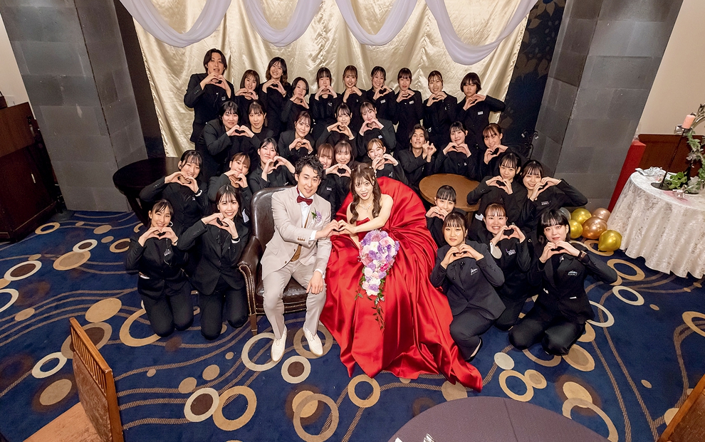 時間の調整やチームから出た意見をまとめること、進捗確認などがとても難しかったのですが、人との繋がりを感じることができ、ご縁の大切さや偉大さを改めて知ることができました。また、お二人の幸せそうな笑顔を見れて私たちも幸せな気持ちになれました。