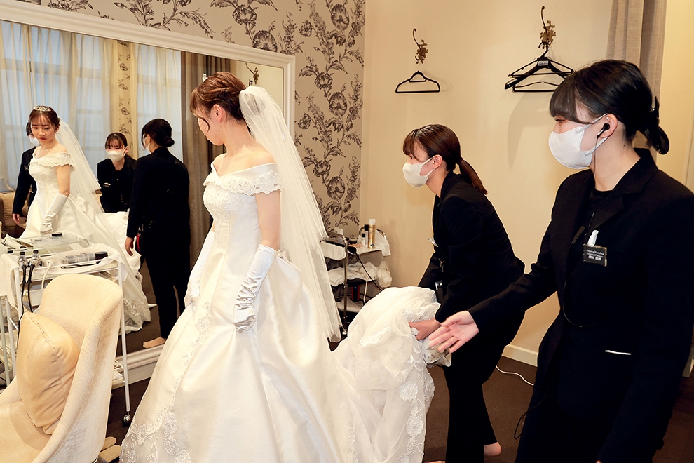 公募した新郎新婦の本物の結婚式をプロデュース!特別な日が最高のものとなるように、最初のお打合わせから当日のアテンドまで、生徒が力を合わせてサポートします。