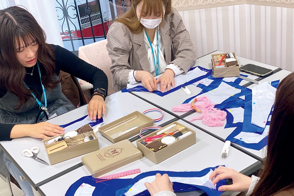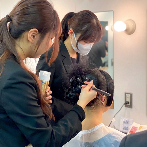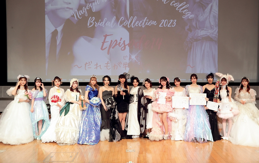 ブライダルヘアメイク&ドレス科の2年生がこれまでの学びの集大成を発表するイベントです。近隣のホテルなどを会場に、ドレスや着物のリメイク、ヘアメイク、ネイル、振り付け、プランニング、音響に至る全てを学生だけで行います!