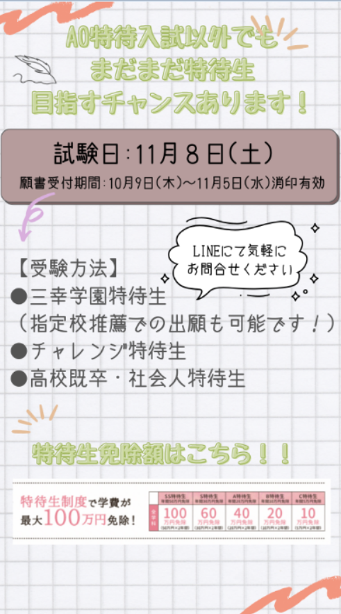 【まだチャンスあります!】特待生入試について