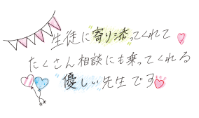 授業の内容や就職など、いつでも気軽に相談できます。前に相談したことを気に掛けてくれたり、名前を憶えてくれていたり…。先生の期待に応えられるようにがんばろう!って思えます。