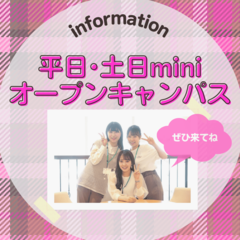 【お知らせ】平日・土日miniオープンキャンパス開催✨2025:09:29:12:00:00