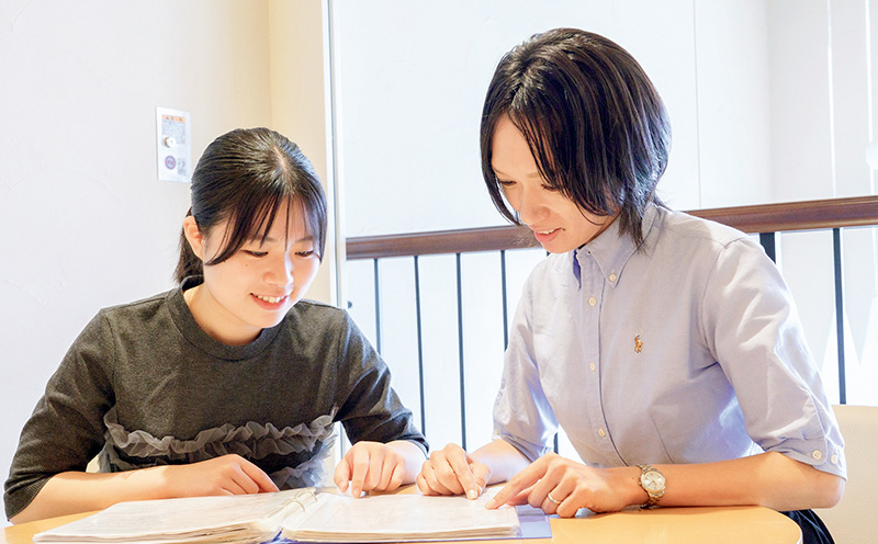 学生一人ひとりの個性や実力をしっかりと把握しているクラス担任と、就職したいエリアの情報に詳しいエリア別就職担当教員の2人で、就職活動をガッチリとサポート。よりリアルで的確なアドバイスを行います。