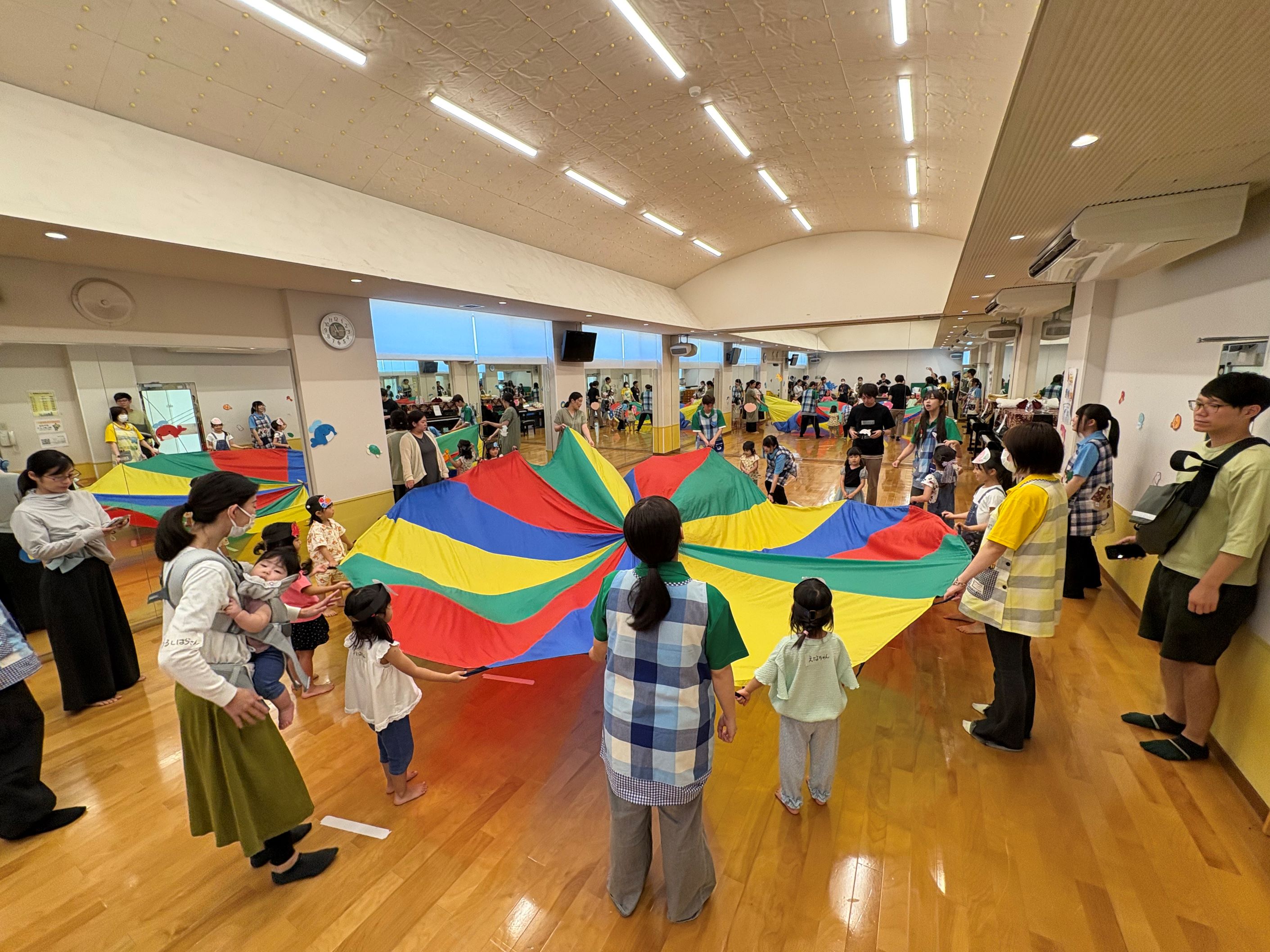 最後には「しゃぼんだま」の歌に合わせて、みんなでパラバルーンを揺らす場面も。音楽を通じて親子がふれあうあたたかな時間となりました。