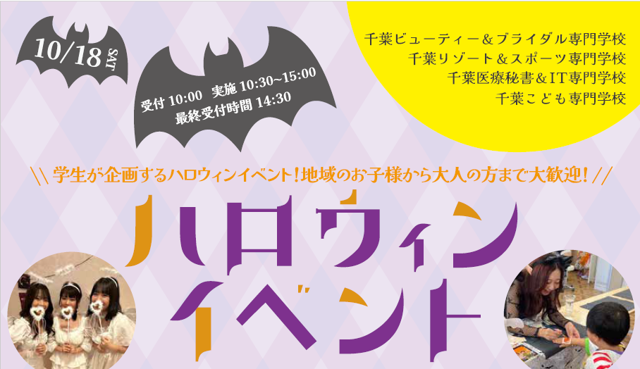 学校法人三幸学園が運営する、千葉医療秘書&IT専門学校、千葉リゾート&スポーツ専門学校、千葉ビューティー&ブライダル専門学校、千葉こども専門学校、飛鳥未来高等学校 千葉キャンパスは、2025年10月18日(土)に地域の皆さまを対象としたハロウィンイベントを開催します。
