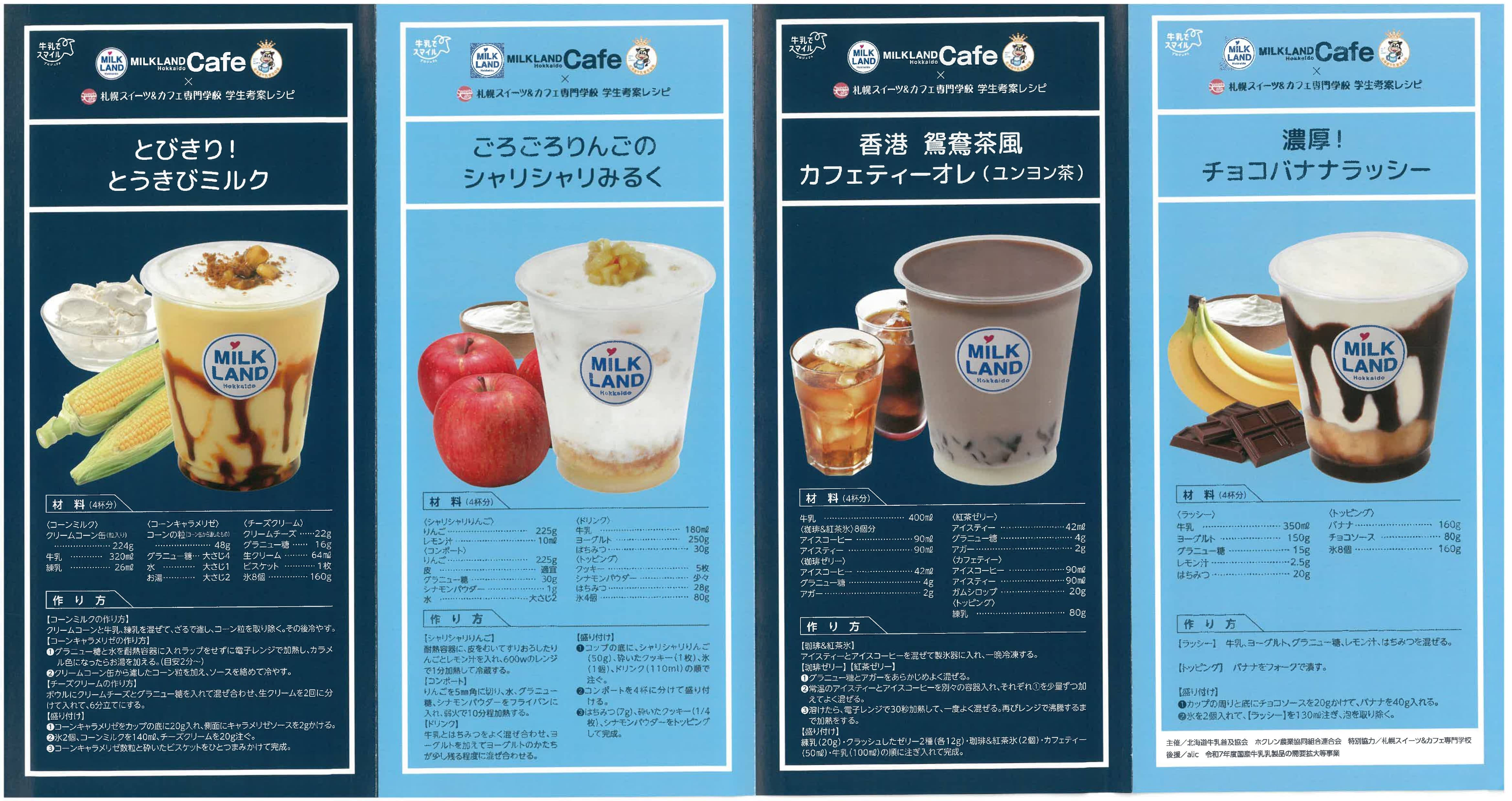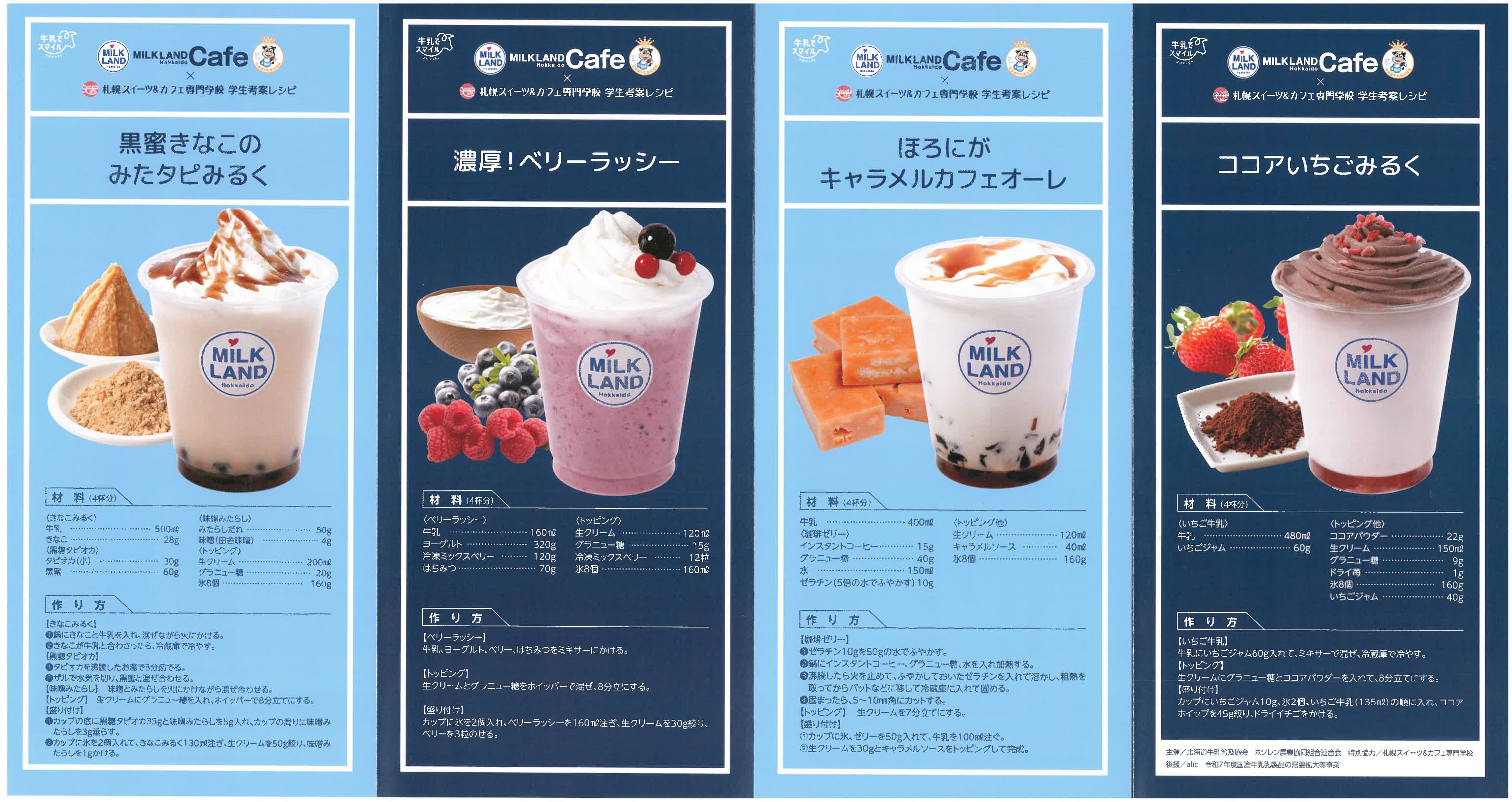 札幌スイーツ&カフェ専門学校は2026年1月21日(水)~1月25日(日)、北海道牛乳普及協会・ホクレン農業協同組合連合会が主催する「ミルク&ナチュラルチーズフェア2026」札幌会場において、札幌スイーツ&カフェ専門学校の学生がイベントに向けて開発したオリジナルドリンクを「MILK LAND Hokkaido CAFÉ」で販売しました。