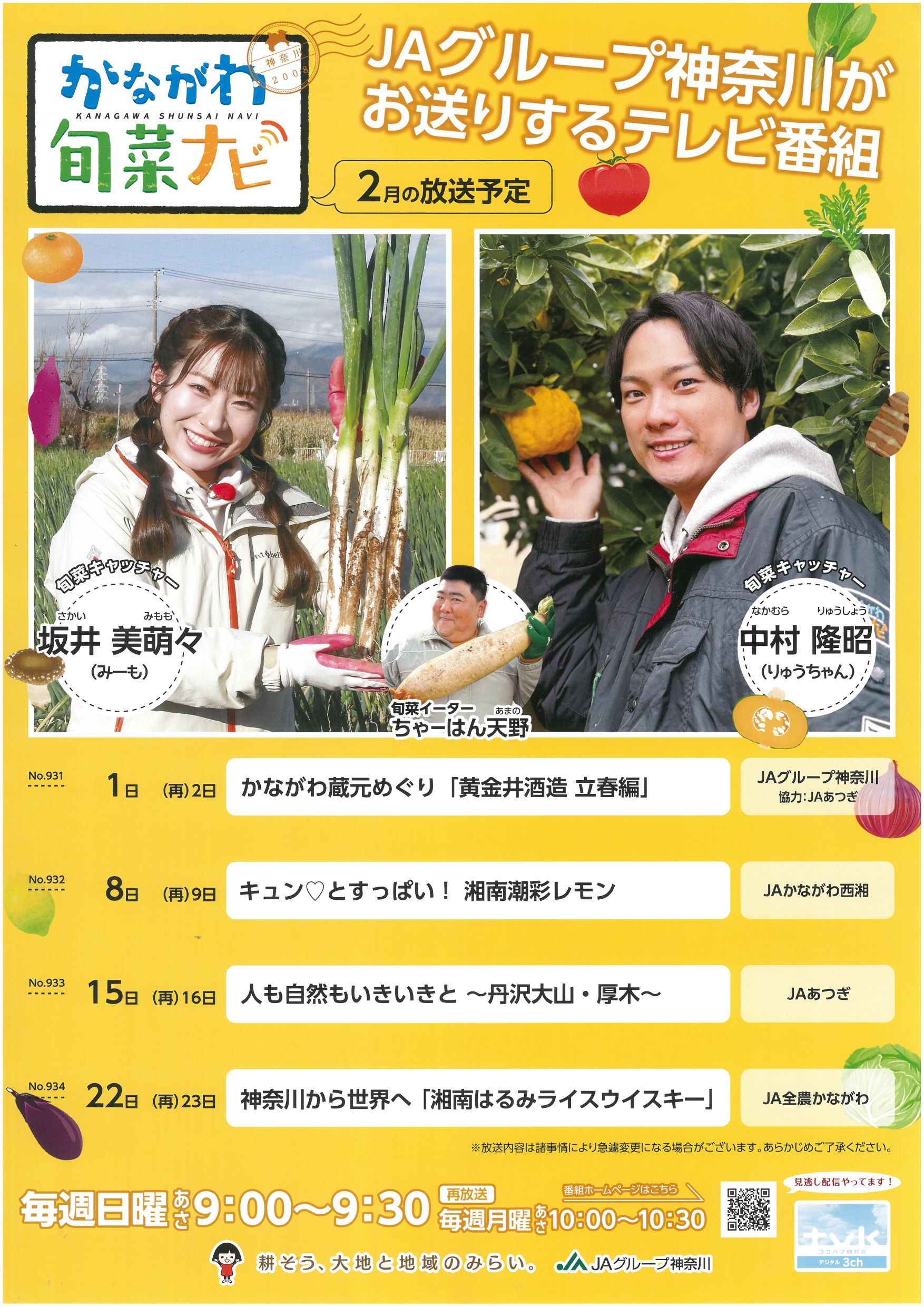 放送日は2月8日(日)9:00~9:30、再放送は2月9日(月)10:00~10:30を予定しております。