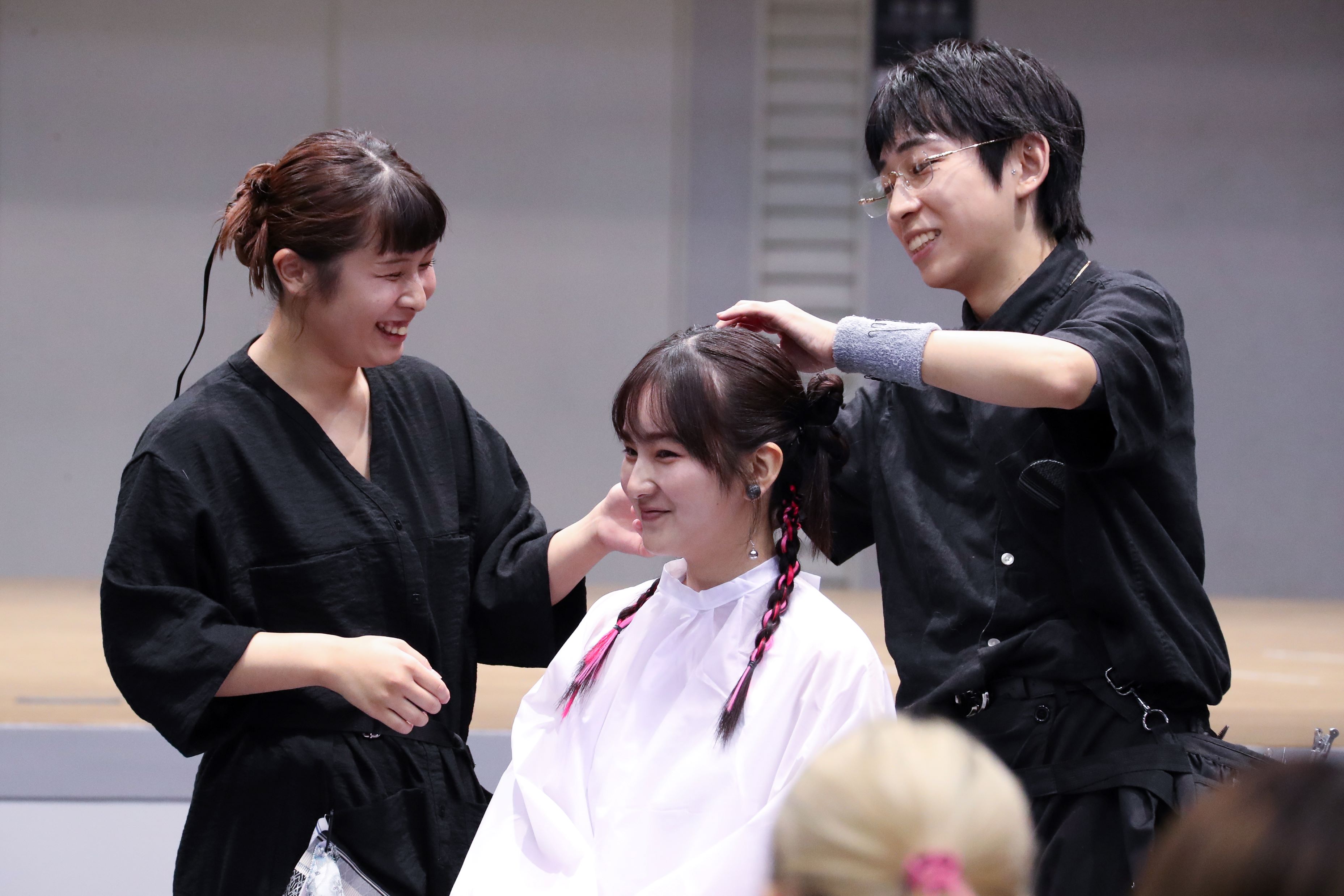 ホリプロ様とエイベックス様の共同開催第47回ホリプロタレントスカウトキャラバン『Horipro Vocal Scout Caravan』にて、東京ビューティーアート専門学校の学生がヘアメイク現場実習を行いました。オーディション参加者のメンズヘアメイクに同行し、プロのヘアメイクスキルを学びました。当校とホリプロ様の連携は多岐にわたり、東京ビューティーアート専門学校のスタジオをホリプロ様にお貸しして所属アイドルグループが練習をすることも。芸能・エンタメ業界との繋がりがある当校は業界で活躍するヘアメイクアップアーティストも多く輩出しています。