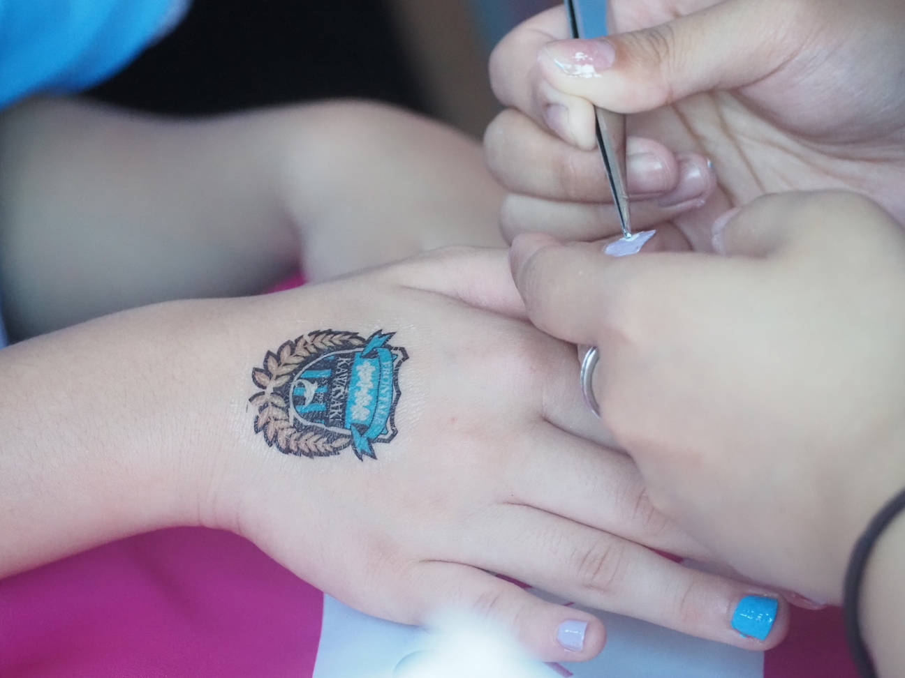 当日は「チーム△」の学生がボディシール・ネイル・ミサンガづくりのワークショップを実施。来場者はフロンターレカラーを取り入れたネイルやシールで応援スタイルに変身し、試合前の会場を盛り上げました。