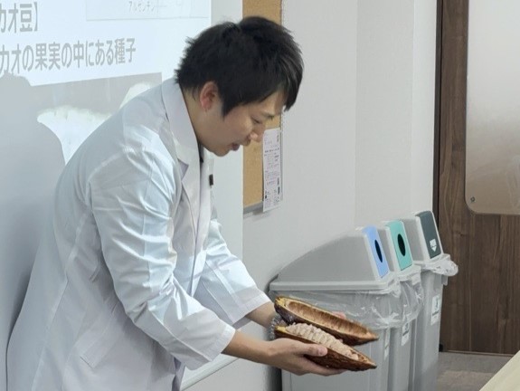 同社の人気商品「ガーナチョコレート」に関する開発背景やこだわり、製造にまつわるエピソードなどが紹介され、参加した学生たちは高い関心を持って受講しました。現場の知見に直接触れることで、商品理解を深める貴重な機会となりました。