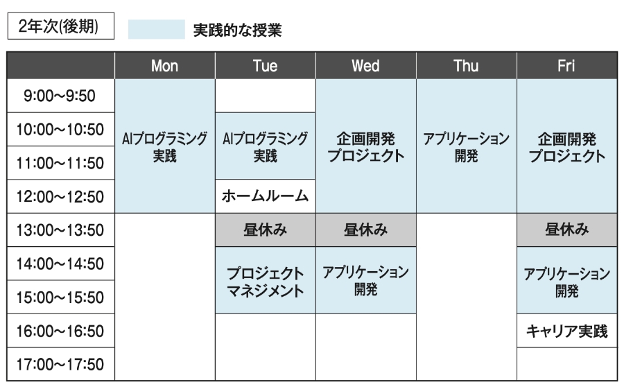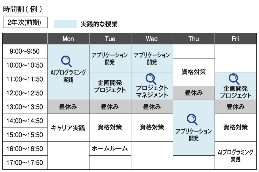 ※時間割は一例です。カリキュラムは変更される場合がございます。